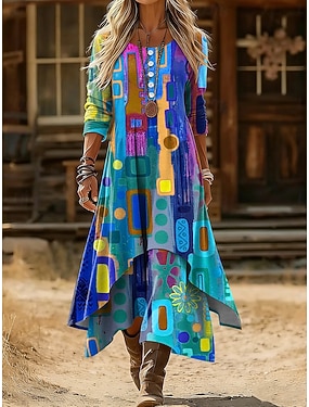Női Maxi Ruha Boho Kesztyűs Ruha Póló Ruha Tee Ruha Vakáció Causal Ünnepi Randi Normál Fit Grafikus Geometrikus Törzsi Hosszú Ujjú Kerek Nyakú Kék Sötétbarna Fekete Piros Tavasz Ősz
