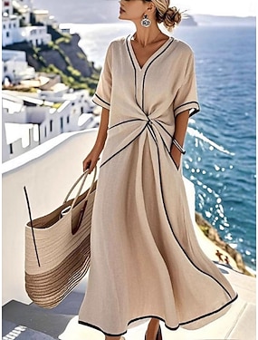 Női Hosszú ruha Maxi ruha hétköznapi ruha Modern Napi Iroda Vakáció Laza öltözet Sima Rövid ujjú V-alakú Medence Khakizöld Nyár Tavasz Ősz