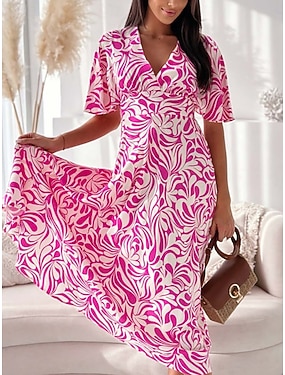 női alkalmi ruha V-nyakú rövid ujjú rózsaszín fehér virágmintás birodalom derék tavasz nyár sokoldalú napi strand piknik flowy kényelmes szövet méretek