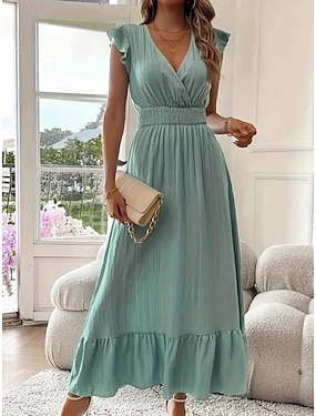 Női Midi ruha hétköznapi ruha Elegáns Divat Modern Szabadtéri Vakáció Alkalmi Normál Sima Rövid ujjú V-alakú Fekete Sárga Világoszöld Rubin Nyár Tavasz