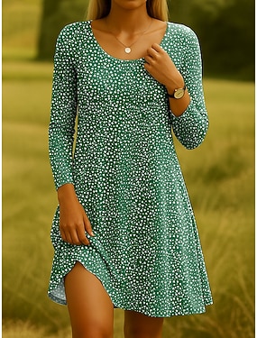 Női mini ruha kereknyakú hosszú ujjú alkalmi ruha pólóruha pólóruha A vonalú ruha alkalmi normál szabású virágos grafika piros kék zöld khaki tavaszi őszi téli