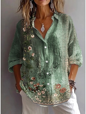 Női ing gombos tunika ing galléros hosszú ujjú ombre virágmintás grafikus vintage mindennapi stílusos V nyakkivágású normál fazonú munkanapi ünnepi nyomott zsályazöld kék lila tavaszi őszi