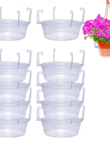 10 db átlátszó, kerek műanyag függőkosár csepegtetőtálcákkal, függő növénytálcák beépített kampókkal és vízgyűjtőkkel, beltéri és kültéri használatra alkalmas, ideális kertészkedőknek