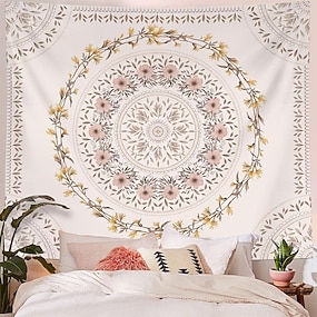 semleges virágmintás mandala rózsaszín virág barna levelek botanikai körminta krémszínű fali gobelin fali dísz hálószoba fejtámla nappali kollégiumi esztétikus dekoráció háttér