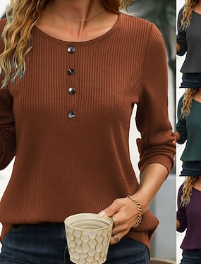 Női T-shirt Hosszú Ujjú Kerek Nyak Hosszú Ujjú Tunika Utca Divat Hétköznapi Mintás Rendszeres Felsők Kerek Nyak Napi Hétvégi Kék Lila Zöld Khaki Tavasz Ősz Előző Ősz