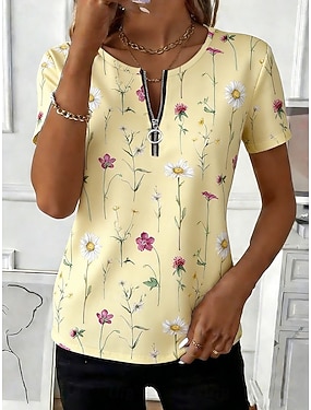 Női Póló Cipzár Virágos Grafika Növények Stílusos Alkalmi Rövid ujjú Terített nyak Normál felsők Napi Sport Hétvége Medence Sárga Arcpír rózsaszín Bíbor Lóhere Nyár Tavasz