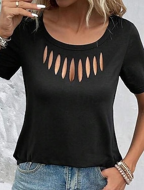 Női Póló Fűzőlyuk felső Kivágott Tömör szín Elegáns Stílusos Alkalmi Rövid ujjú Terített nyak Normál felsők Napi Alkalmi Fekete Nyár Tavasz