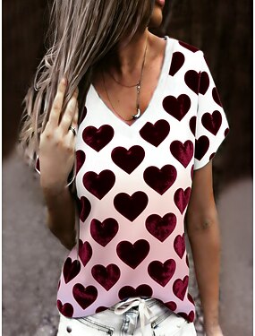 Valentin nap Női Póló Tee Top Nyomtatott Szív Grafika Stílusos Klasszikus Alkalmi Rövid ujjú V-alakú Normál felsők Napi Alkalmi Hétvége Arcpír rózsaszín Nyár Tavasz