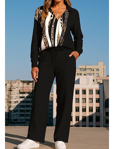 Női Pulóver Melegítő Tréningnadrág Zsinór Cipzár Leopárd Dzseki és nadrág Sportruházat készlet Lounge-ruházat Nyár Tavasz Ősz Tél Fekete / Fehér Edzőterem edzés Hétköznapi Edzés Melegen tartani