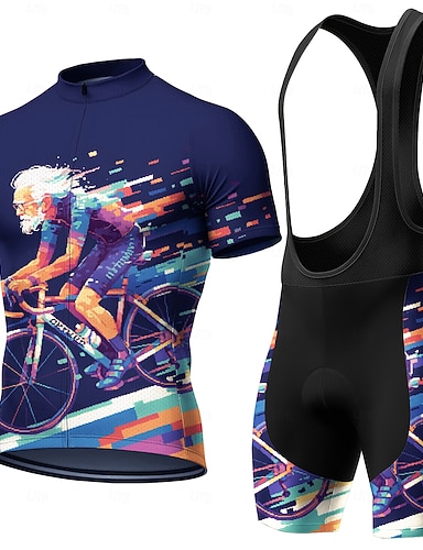 Férfi Biciklis ruházat Kerékpáros dzsörzé kantáros nadrággal Rövid ujjú Hegyi biciklizés Országúti biciklizés Nyár Tavasz Sötét tengerészkék Rajzfilm Mértani Bicikli Fényvédő UV ellenálló 3D-s párna
