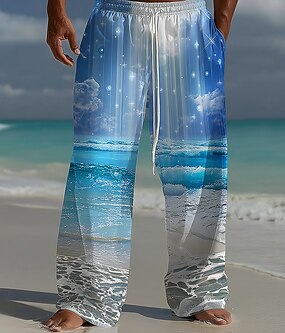 Férfi óceán Tájkép Tenger Nadrág Bő nadrág Alkalmi nadrág Közepes csípő Hawaii Szabadtéri Vakáció Strandruházat Elasztikus húzózsinóros derékrész Lenvászonszerű nadrág zsebekkel Nyár Tavasz 3D