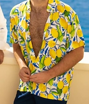 Férfi Tropikus Ing Hawaii ing Aloha ing Rövid ujjú Ing Térfogatcsökkenés Tropikus Divat Hawaii Szabadtéri Tengerpart Utca Fekete + Fekete Sárga Arcpír rózsaszín S M L