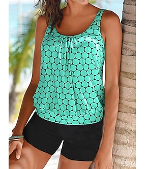 Női tankini 2 részes fürdőruha pálma sortok hasformáló magas derekú karcsú hát nélküli nyaralás strandi viselet ombre geometrikus U-nyakú ujjatlan fürdőruhák