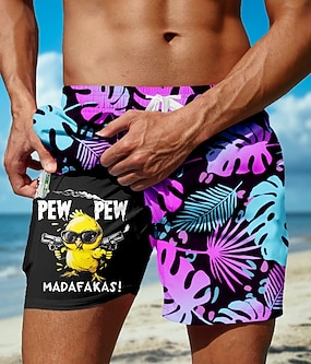 Férfi Vicces Kacsa Pálmafa levél Bélelt rövidnadrág 2 az 1-ben úszónadrág Úszónadrágok Közepes csípő Hawaii Vakáció Szabadság Strandruházat Oldalzsebek Compression Linerrel Elasztikus húzózsinóros