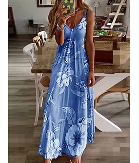 Női Maxi hosszú ruha hétköznapi ruha Slip ruha Divat Alap Modern Napi Szabadtéri Tengerpart Normál Virágos Ujjatlan V-alakú Medence Arcpír rózsaszín Bíbor Lóhere Nyár Tavasz