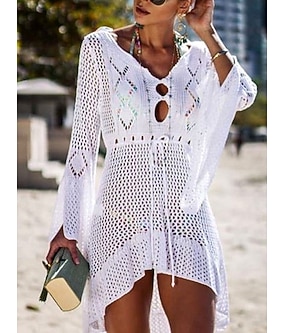 Női Mini ruha Fehér ruha Strandruha Fekete ruha Elegáns Divat Klasszikus Napi Szabadtéri Tengerpart Normál Sima Hosszú ujj V-alakú Fekete Fehér Rózsapiros Nyár Tavasz