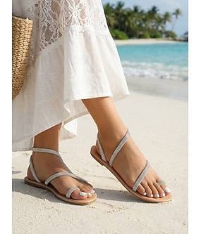 női strassz pántos lapos talpú szandál – csillogó minimalista nyári cipők tengerparti nyaraláshoz, üdülőhelyi öltözékhez, medenceparti bulikhoz &hétköznapi viselet meleg időjáráshoz