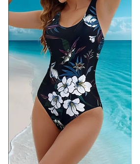 Nők egyrészes fürdőruha karcsúsító pálma monokini haskontroll magas derekú karcsúsító hát nélküli nyaralás vintage virágos grafikus U nyakú ujjatlan fürdőruhák