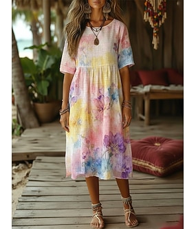 Női Midi ruha Műpamut ágynemű Boho ruha Váltó ruha hétköznapi ruha Elegáns Napi Szabadtéri Tengerpart Laza öltözet Virágos Féhosszú Terített nyak Arcpír rózsaszín Nyár Tavasz