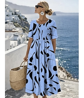 Női Midi Ruha Vászon Szerű Elasztikus Ruha Vakáció Hétköznapi Tengerparti Naponta Kimenő Rendszeres Illeszkedés Grafikus Geometrikus Ujjatlan Kerek Nyak Kék Sárga Lila Narancs Nyár Tavasz