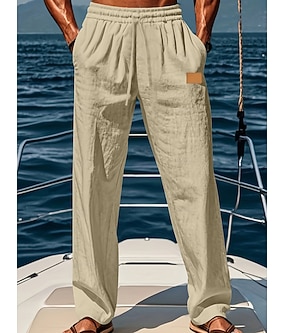 Férfi Vászon nadrág Nadrág Nyári nadrág Bő nadrág Strand nadrág Zsinór Rugalmas derék Egyenes lábbal Sima Mokaszinok Légáteresztő Teljes hossz Hétköznapi Napi Szabadság Szabadság Klasszikus stílus