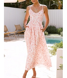 Női Maxiruha A vonalú ruha Slip ruha Szabadság Alkalmi Szabadtéri Alkalmi Normál Virágos Ujjatlan V-alakú Medence Sárga Arcpír rózsaszín Rubin Nyár Tavasz