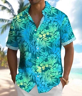 Férfi Falevél Virágminta Trópusi virágok Hawaii ing Gombos póló Aloha ing Rövid ujjú Hawaii Szabadság Strandruházat Nyár Tavasz Térfogatcsökkenés 3D nyomtatás galléros ingek Első egy zseb Medence