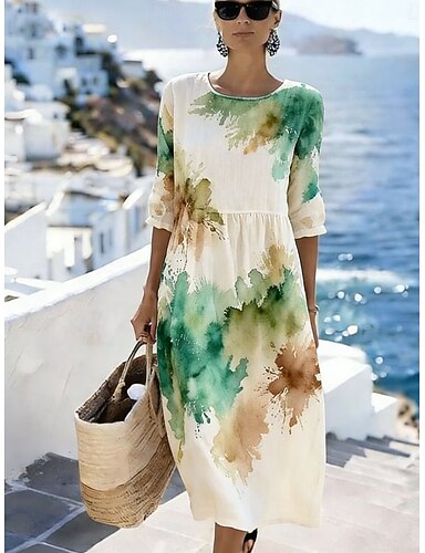 Női Midi ruha hétköznapi ruha Nyomtatott ruha Divat Modern Napi Tengerpart Hétvége Normál Virágos Színes Háromnegyedes Terített nyak Medence Sárga Fukszia Lóhere Tavasz Ősz
