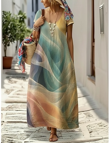 Női Maxi hosszú ruha hétköznapi ruha Szüret Napi Szabadtéri Tengerpart Normál Ombre Rövid ujjú Terített nyak Lóhere Nyár Tavasz