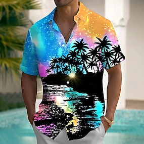 Férfi Kókuszfa Színátmenet színe Trópusi növények Hawaii ing Gombos póló Aloha ing Rövid ujjú Hawaii Szabadság Strandruházat Nyár Tavasz Térfogatcsökkenés 3D nyomtatás galléros ingek Első egy zseb