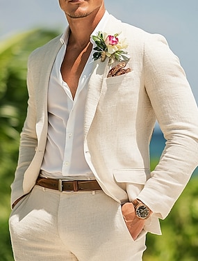 Férfi Tengerparti esküvő Vászonruhák Fehér Bézs Pehelysullyú Alkalmi Egyszínű Standard 2 részes készlet Egysoros egy gombos