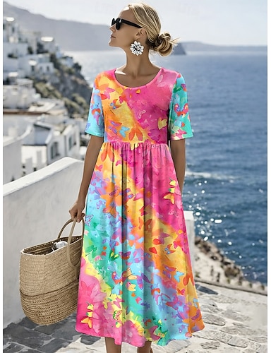 Női Midi ruha Váltó ruha Szabadság Alkalmi Szabadság Laza öltözet Ombre Grafika Pillangó Rövid ujjú Terített nyak Medence Sárga Arcpír rózsaszín Bíbor Nyár Tavasz