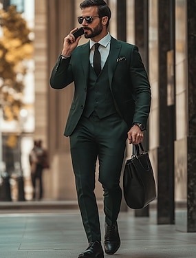 Férfi Esküvői Öltönyök Hazatérő Öltönyök Fekete Sötétzöld Egyszínű Standard Fit 3 Részes Egygombos