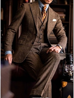 Férfi Üzleti Esküvői öltönyök Hasított rever Barna Előírásos Egyszínű Szabott 2 részes készlet