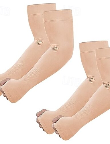 2 pár UV napvédő karvédő hüvelykujjlyukkal férfiaknak, nőknek és fiataloknak, hűsítő hüvely tetoválás eltakarására, közepes kompressziójú