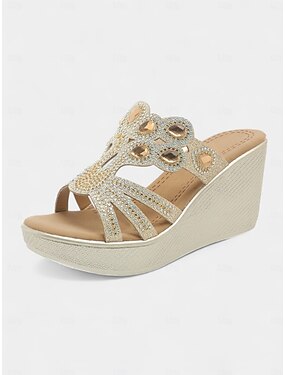 női boho arany strasszos ékszandál – csillogó, felcsúsztatható platformsarkú, tengerparti nyaraláshoz, nyári bulikhoz és üdülőruházathoz