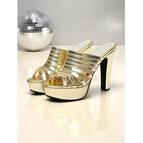 női arany csillogó blokk sarkú szandál, keresztben keresztezett pánt kialakítás koktélpartikhoz, éjszakai rendezvényekhez és bálhoz