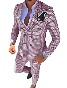Férfi Esküvő ruhák Zárható gallér Fehér Arcpír rózsaszín Kockás Standard 2 részes készlet Duplasoros hat gomb