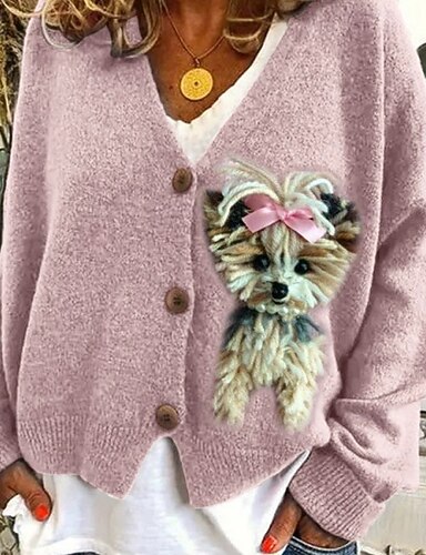 Női Pulóver Divat Grafika Állat Bordázott V-alakú Kötött Hosszú ujj Normál felsők Kötött Szabadság Alkalmi Hétvége Fekete Arcpír rózsaszín Tél