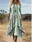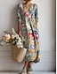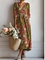 Női Midi Ruha Len Szerű Lélegző Könnyű Napruha A Vonallal Nyári Hétköznapi Boho Ünnepi Normál Illeszkedés Virágos Grafika Színblokk Hosszú Ujjú V Nyak Kék Rózsaszín Barna Zöld Nyár Tavasz