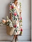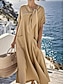 Womens Maxi Ruha Vászon Szerű Lélegző Könnyű Nyári Ruha Shift Ruha Hétköznapi Parti Ünnepi Normál Illeszkedés Virágos Hosszú Ujjú V Nyak Fehér Rózsaszín Barna Szürke Nyár Tavasz