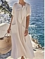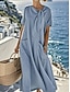 Női Maxiruha A vonalú ruha Szabadság Alkalmi Boho Napi Laza öltözet Sima Rövid ujjú Terített nyak Medence Fekete Fehér Világoszöld Nyár Tavasz Ősz