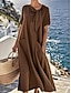 Női Maxiruha A vonalú ruha nyári ruha Alkalmi Napi Laza öltözet Sima Rövid ujjú V-alakú Medence Világosbarna Barna Katonai zöld Nyár