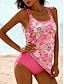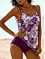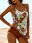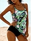 Női Fürdőruha Tankini 2 darab Merész Fürdőruha Hasszorító Magas derék Vékony Szabadság Strandruházat Grafika Tropikus U-alakú Ujjatlan Fürdőruhák