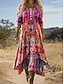 Női Hosszú ruha Maxi ruha Boho elegáns ruhák Nyári ruha Strandruha Tropikus Alkalmi Boho Vakáció Munka Napi Normál Ditsy virágos Rövid ujjú V-alakú Hajtóka Barna Szivárvány Nyár Tavasz Ősz
