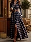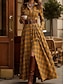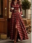 Női Maxiruha Váltó ruha Szabadság Alkalmi Boho Napi Normál Kockás Hosszú ujj Állógallér Medence Sárga Arcpír rózsaszín Rubin Tavasz Ősz Tél