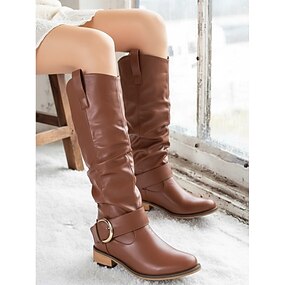 női vintage barna műbőr lovaglócsizma fűzős és csatos részletekkel - térdig érő lovas stílus hétköznapi és szabadtéri viselethez