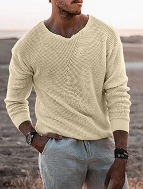 Férfi Pulóver Pulóver pulóver Bordázott Kötött Normál felsők Kötött Szűk fazon Sima V-alakú Kötöttáru Kortárs Hétköznapi Hétköznapi viselet Ruházat Ősz Teveszín Fekete S M L