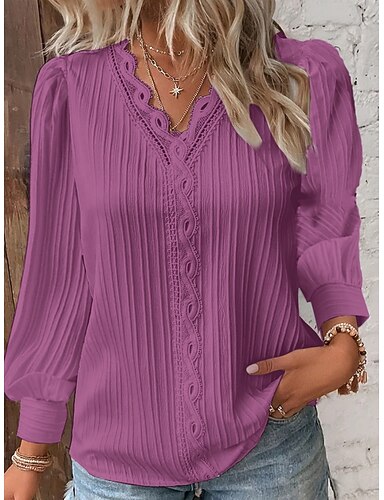 Női Csipke ing Tömör szín Elegáns Stílusos Alap Hosszú ujj V-alakú Normál felsők Napi Csipke Kollázs Fehér Rubin Bíbor Narancssárga Lóhere Nyár Tavasz Ősz
