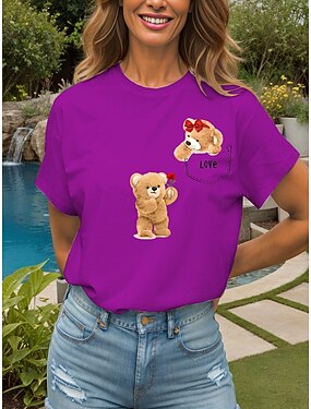 Női póló Nyugdíjas Grafikás Állat Betű Stílusos Hagyományos Kényelmes Rövid Ujjú Kerek Nyak Átlagos Felsők Napi Hétvégi Nyomtatás Fehér Rózsaszín Kék Lila Nyár Tavasz